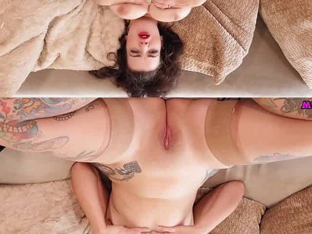 Cindy Dollar And Dries Breyne In She Seduces Her Neighbor On The Sofa With Cunt Showing And Jerking Off