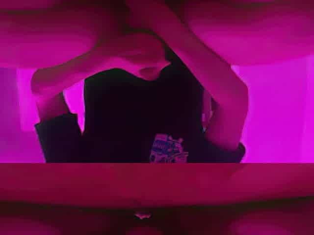 Femboy in Constricted White Bodysuit Strokes Large Rod with Belts & Harness