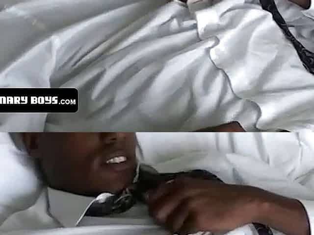 Black horny hunk fucks white boy's ass then they jerk off side by side