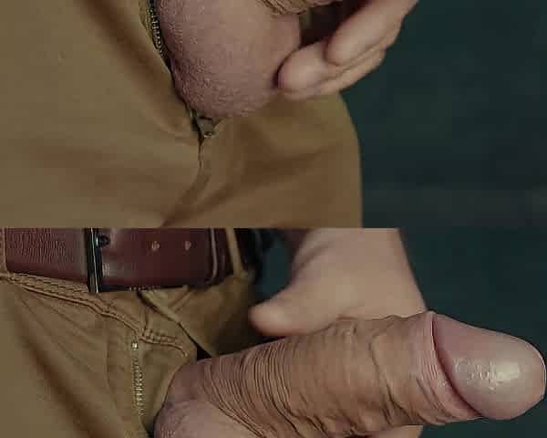 Groans and intensive ejaculation from a sexy unshaved dude stroking after work