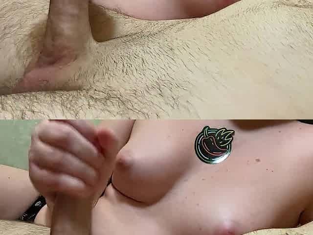Jerking Him Off Whilst This chab Plays With My Teats And Letting Him Finish Over My Titties (JIZZ FLOW)