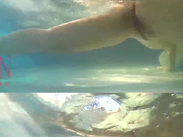 Elegant and supple playgirl, swimming underwater in the outdoor swimming pool. three two