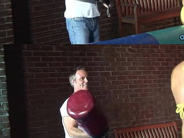 Ballbusting in red underware!