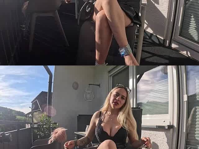 Latex mother I'd like to fuck bodysuit tease on outdoor couch