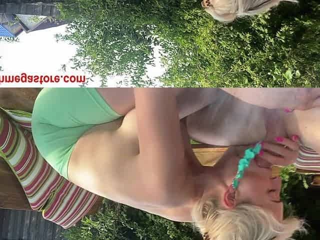 Teen teases busty MILF's big tits outside in kink-filled tickling session