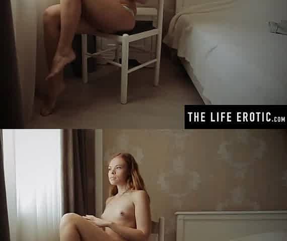 Hawt redhead masturbating as that babe spies on her marvelous neighbour