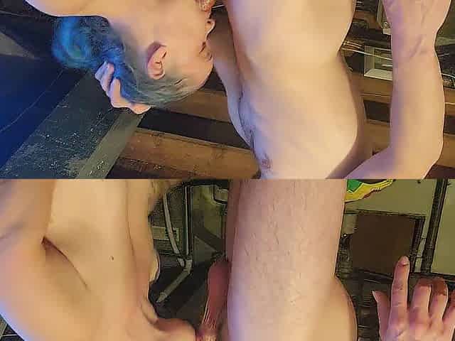 Midget doing the fruit roll up trend on me, then gets bent over a chair.