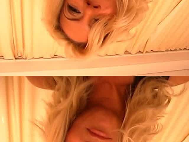 Kinky blonde wearing lingerie fingering her shaved pussy