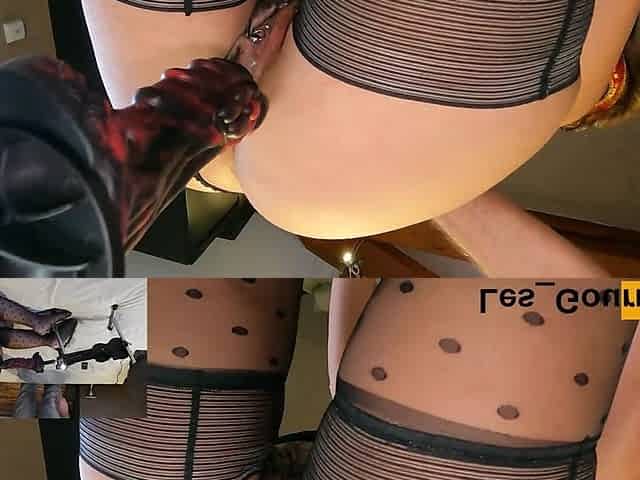 snatch with large labia piddles like a hydrant with polka dot nylons