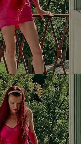exhibitionist urinates with vagina lips open on a immodest chair on balcony