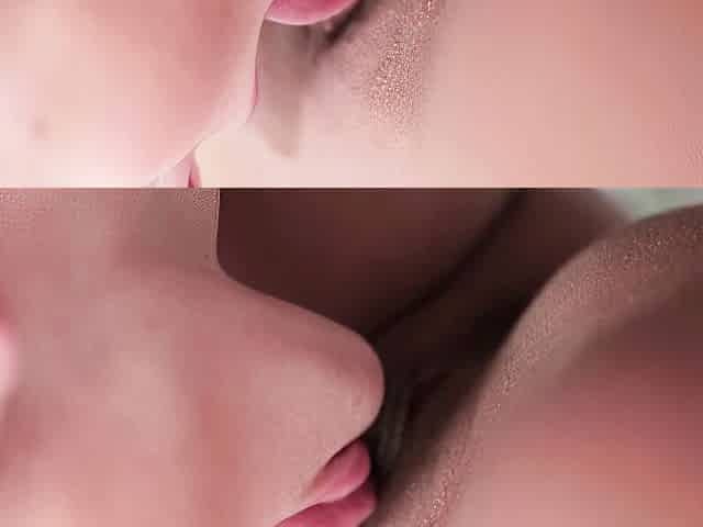 Pretty Brunettes Kiss Passionately Before One Eats The Others Shaved Cunt