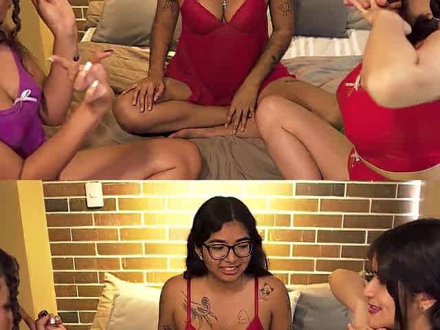 College Pijama Party ends on Wild Threesome Lesbic Sex