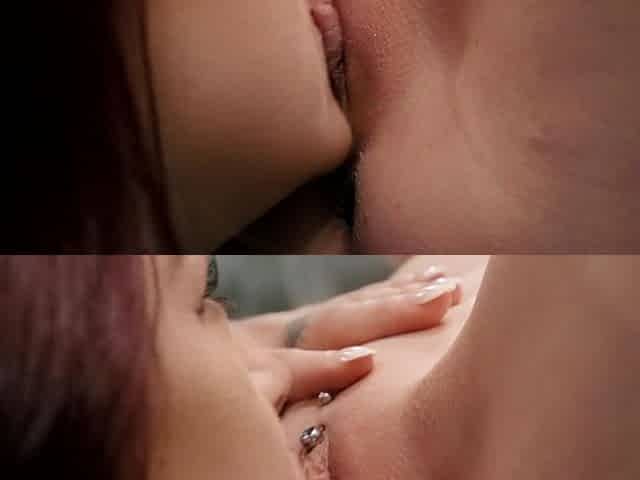 Lesbo lovers giving a kiss and licking cunt