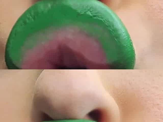 Green Minty Lipstick Glossy Pouty Bimbo Kisses 4K Ultra HD