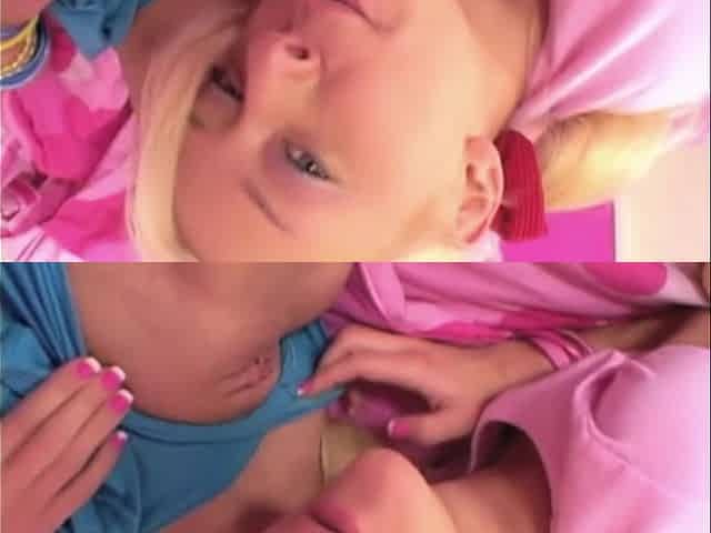 Tiny girls press bodies together and kiss deeply