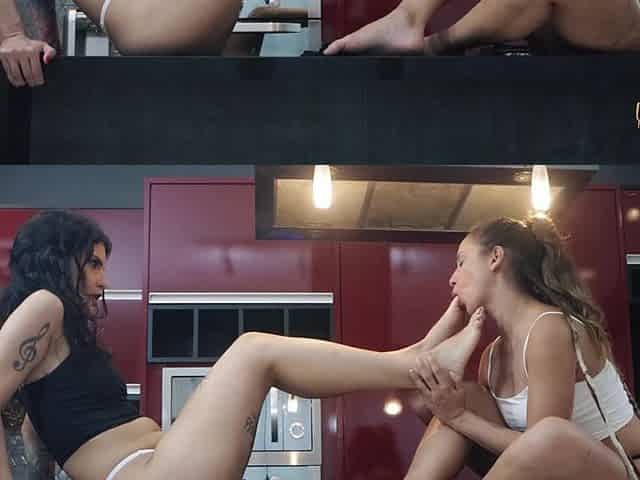Venus and Mia Cherry in Intense Foot Worship on the Kitchen!