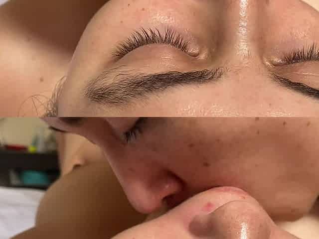 An adult woman has a beefy raunchy experience, resulting in her face being coated with jizz