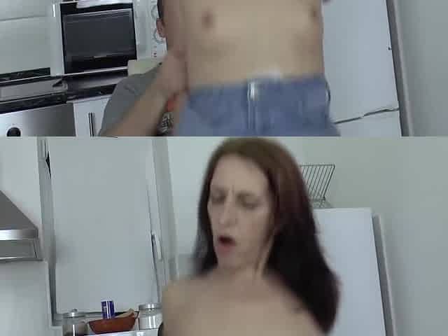 Lustful woman is screwing her impressive step- son in the kitchen and groaning during the time that cumming