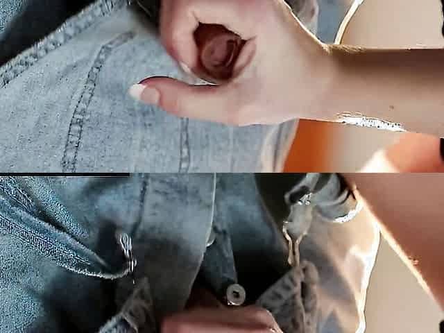 Ebony babe in kitchen gets cumshot after giving hot handjob