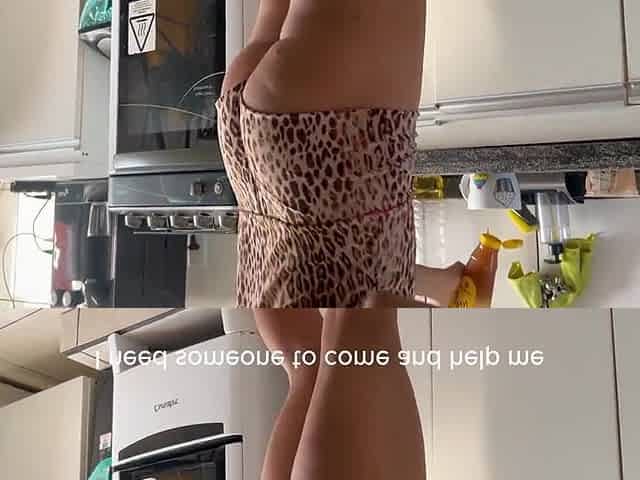 My Hot Stepmom Cooks Naked in the Kitchen and Caresses Her Pussy. Enjoy