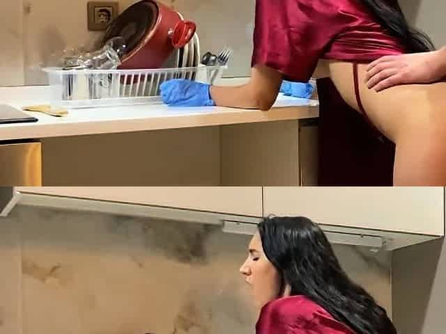 Latin Teen Maid Gets Quickie in the Kitchen and a Creamy Sur