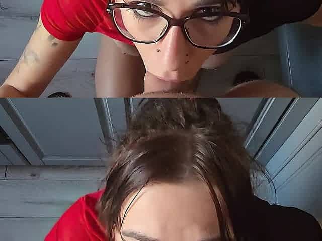 Cheerful Brunette hair Kitchen Oral pleasure - POV