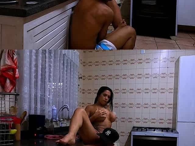 My Stepbrother Fucks Me in the Kitchen Before Our Stepmother Discovers Us, He Can't Hold on and Cums Inside Me! Naty Delgado