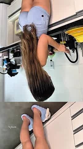 I caught her cleaning her kitchen and I couldn't aid but screw her