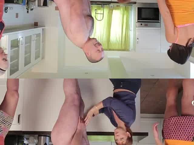 Lesbians Are Cooking in the Kitchen! but Big Hard Cock in Their Ass and Pussy Stopped It…