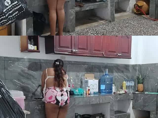 ???? Amigo de mi hijo me encuentra en la cocina, jala a un lado mis bragas y me la mete duro