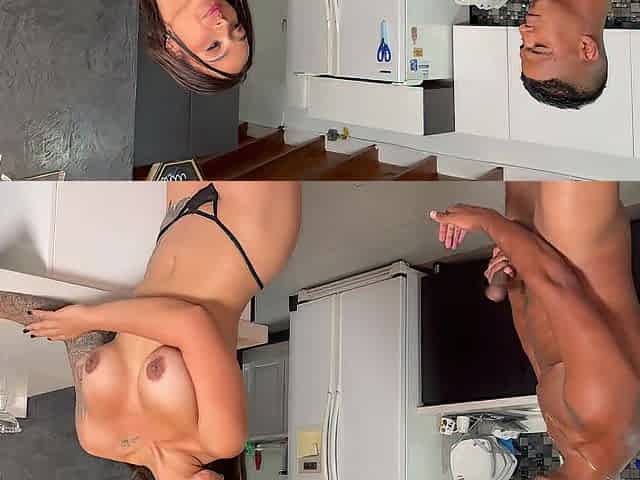 LorenaDoll gets lascivious when David Bander’s towel drops and rides his large ebony dick in the kitchen ha