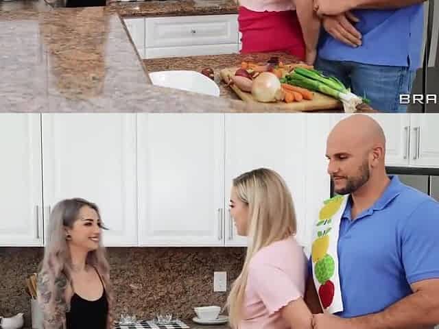 Busty Brunette Gets Boned In The Kitchen With Reagan Foxx And Tyler Nixon