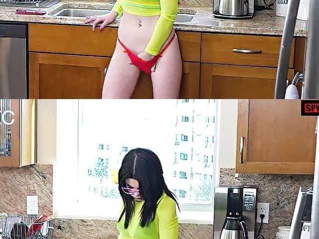 Horny Stepsis Avery Moon Gets Busted Riding Dildo in Kitchen