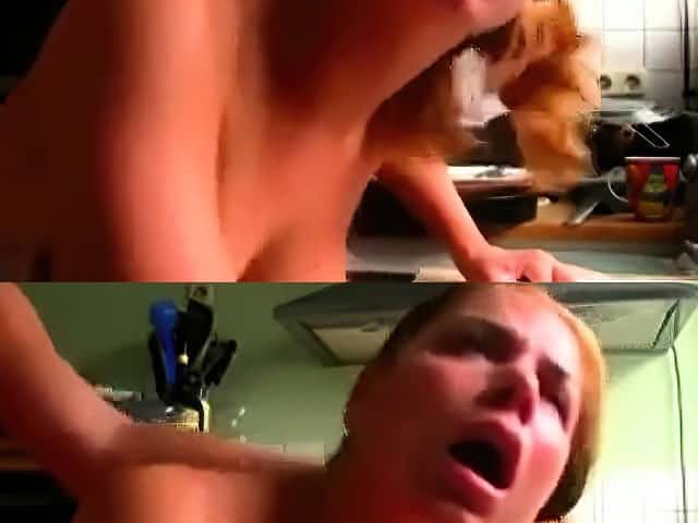 Cock-loving young redhead gives head and gets nailed in the kitchen