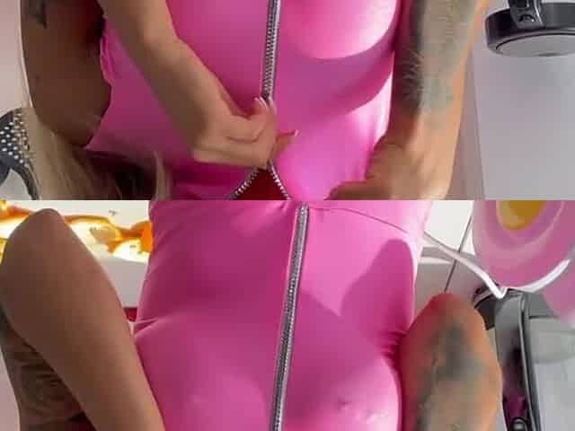 Luscious Monika Fox in Pink Bodysuit Undresses in Kitchen!