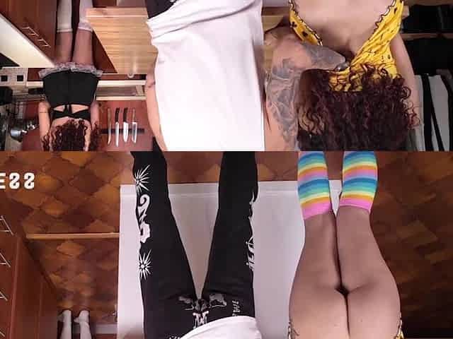 Hot lesbian sex of Kitty Marie and Ella Bella in the kitchen