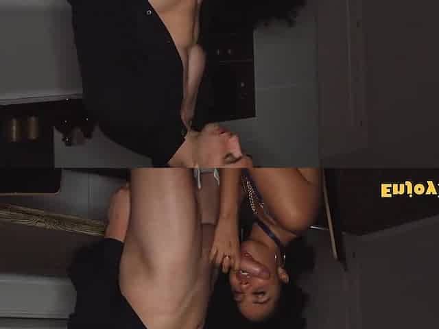 Breasty Ebony Housewife Drilled in Kitchen and Cummed in Throat by Large Ebony Knob