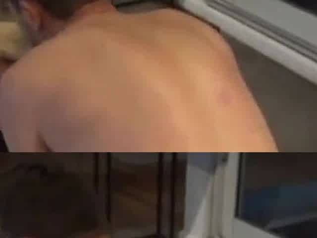 I got fucked fast in the kitchen, stepdad surprises me how fast he cums