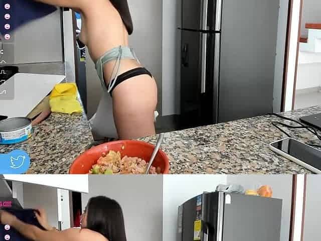 Colombian Webcam Girl Alicia Plays with Her Tits in the Kitchen While Streaming on Her Show