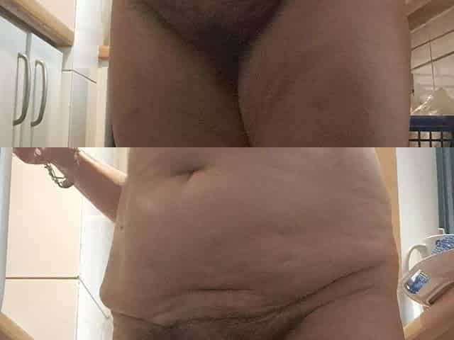 Hairy Brunette Pussy, Big Tits, Sensual Hairy Woman in the Kitchen.