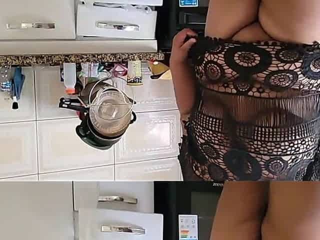 We are cooking lunch and then we begin undressing in the kitchen