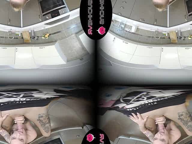 Blonde Tattooed Iris Sucks A Hard Cock In Her Kitchen - SuckMeVR