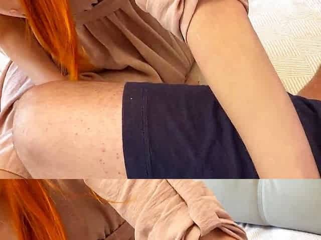 Lovely and cute redhead with a tempting body takes her stepbrother's impressive cock in her mouth and pussy