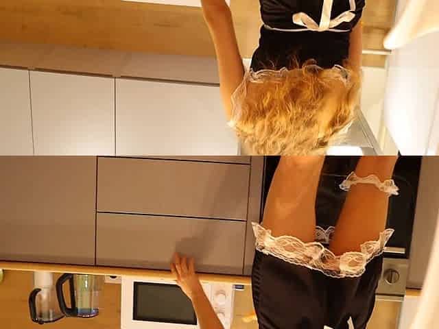 Short skirt, house cleaning