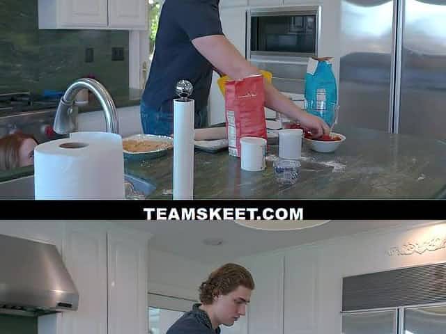Teen busted her bf fucking nasty stepmom in the kitchen