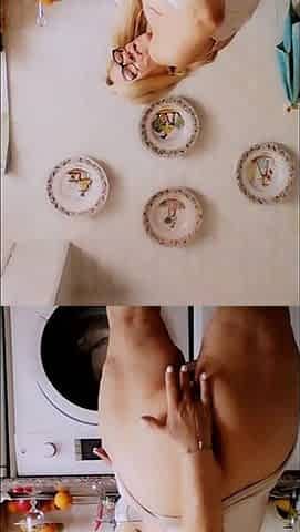 Blonde beauty Amaris satisfies her kinky urges in the kitchen