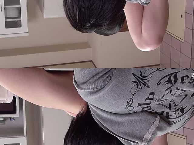 "Sexy Shy Big Boobs Step-mom Stripping in Shorts in the Kitchen"