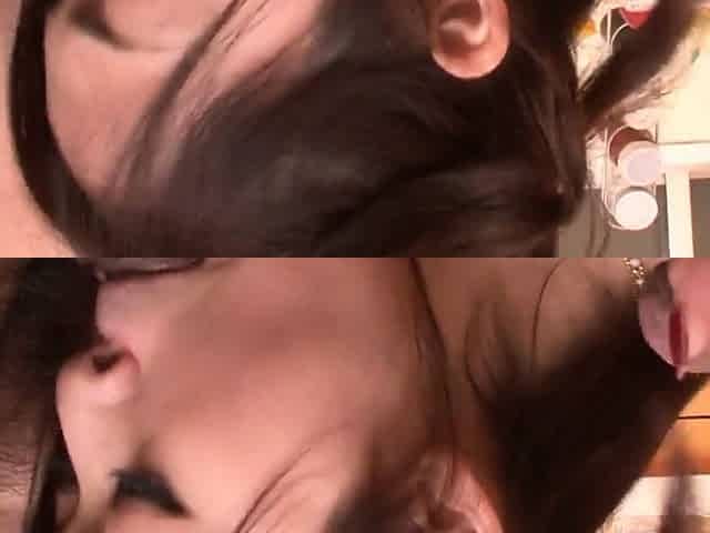 Ann Yabuki gives an asian blow job to two in the kitchen