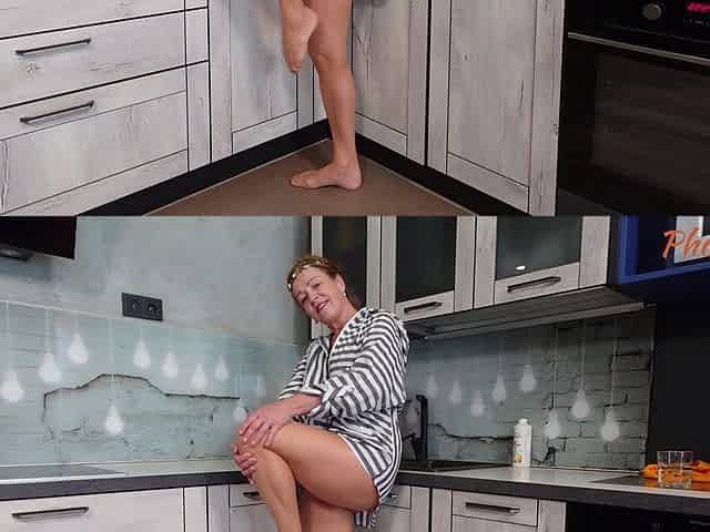 Passionate masturbating in the kitchen by kinky MILF Nadia