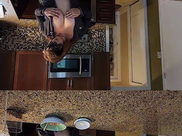 Huge breasted housewife has wild sex with a young man in the kitchen